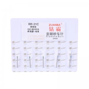 【結構及組成】由車針柄和工作部分組成。其中車針柄由不銹鋼材料制成,工作部分鍍有金剛石顆粒。
